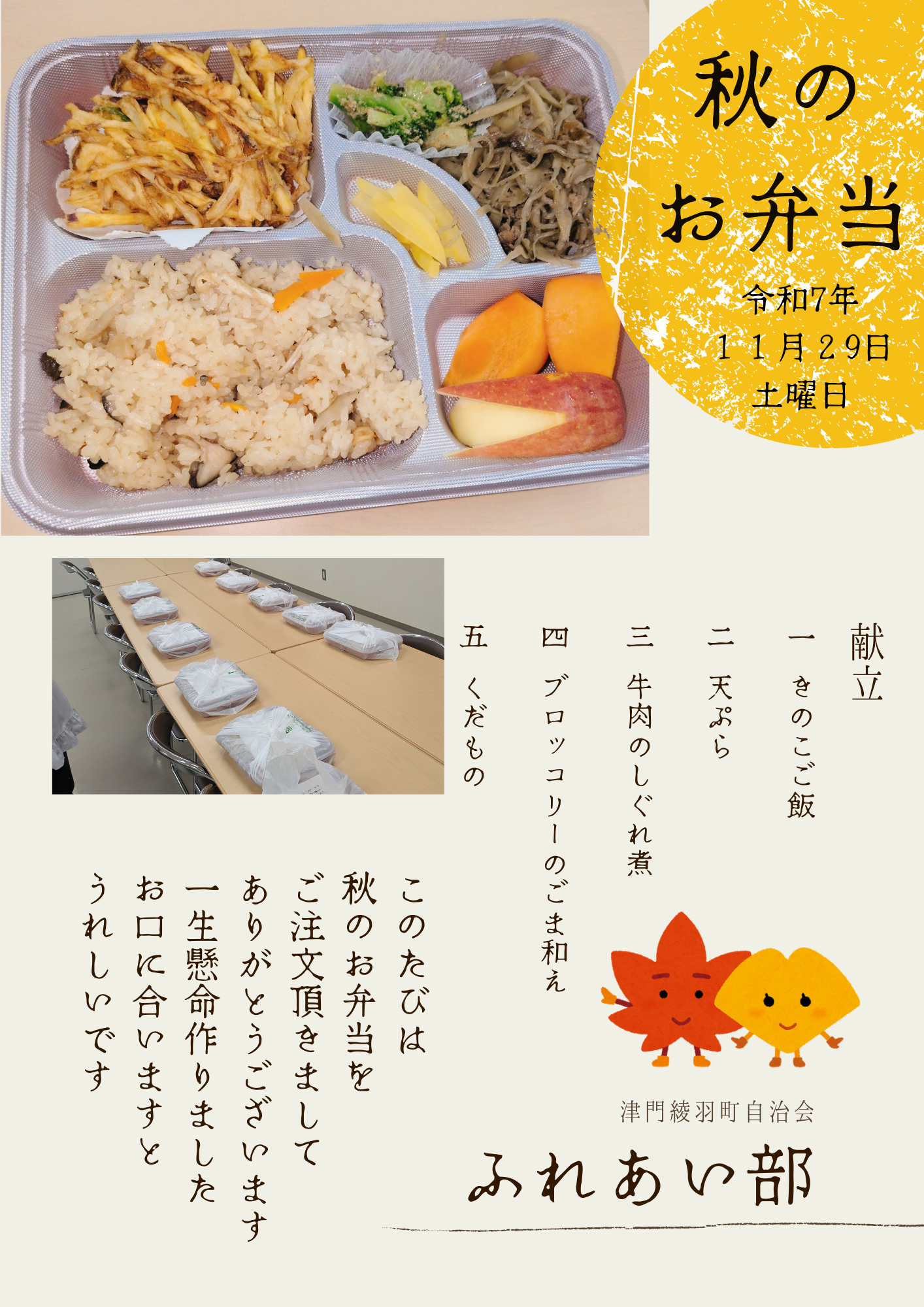 - 2025-11-29 ふれあい部「秋のお弁当」